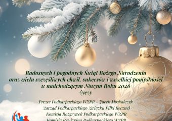 🎄 Radosnych i Pogodnych Świąt Bożego Narodzenia oraz wielu szczęśliwych chwil, sukcesów i wszelkiej pomyślności w nadchodzącym Nowym Roku 2026 życzy ❄️ ✨ Prezes Podkarpackiego Wojewódzkiego Związku Piłki Ręcznej – Jacek Moskalczyk✨ Zarząd Podkarpackiego Wojewódzkiego […]