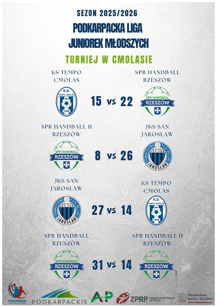 Nadrabiamy zaległości i przesyłamy informacje o I turnieju Podkarpackiej Ligi Juniorek Młodszych, który odbył się w Cmolasie. W turnieju w Ośrodek Wypoczynku i Rekreacji w Cmolasie wzięły udział cztery drużyn z województwa podkarpackiego: SPR Handball Rzeszów, SPR Handball II Rzeszów, KS Tempo Cmolas oraz JKS San Jarosław ![]()