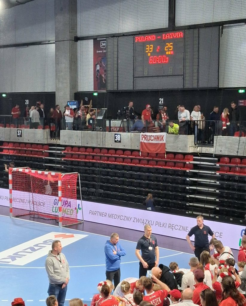 🔥 W ostatnią niedzielę (22.03.2026) przedstawiciele klubu sportowego UKS Jedynka Pruchnik kibicowali drużynie narodowej w zwycięskim spotkaniu z Łotwą (33:25). Wygrana podopiecznych Joty Gonzaleza przypieczętowała awans Polaków do majowej, trzeciej rundy eliminacji Mistrzostw Świata 2027.